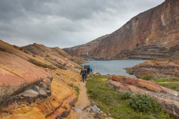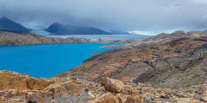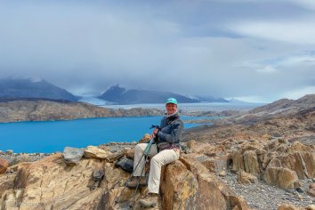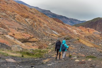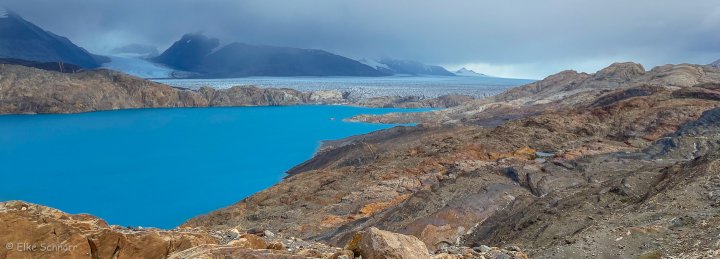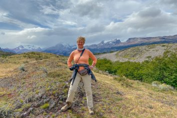 Wir starten in Richtung Norden und laufen bis zu einem Aussichtspunkt, an dem wir nochmals einen tollen Blick auf den Guillermo-See und den Upsala Gletscher werfen können.