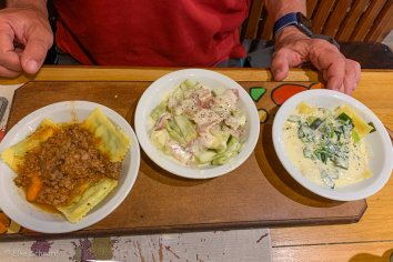 Wir steigen gleich im Zentrum aus und gehen im La Cocina zum Abendessen. Hier probieren wir das Pasta Tasting Menü in zwei verschiedenen Varianten: