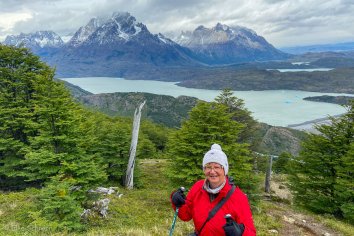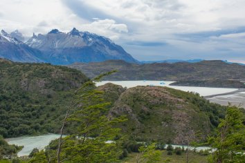 Wir können die Aussicht auf den Lago Grey mit seinen Gletschern nicht wirklich genießen, da wir uns viel zu sehr darauf konzentrieren müssen, nicht umgeblasen zu werden.