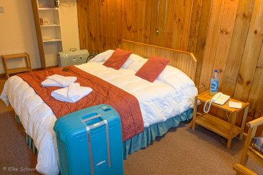 Gegen 16:30 Uhr sind wir wieder am Parkplatz und fahren nun eine Stunde über Feinripp zurück zum Lago Pehoe. Dort checken wir in der traumhaft gelegenen Hosteria Pehoe für die nächsten drei Tage ein.
