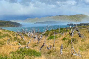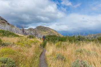 Der einfache, aber abwechslungsreiche Trail führt vorbei am idyllischen Lago Nordenskjöld und durch eine grandiose Landschaft. Dabei haben wir unterwegs permanent das Paine-Massiv im Blick, aus dem die Cuernos in verschiedenen Perspektiven vor uns aufragen.