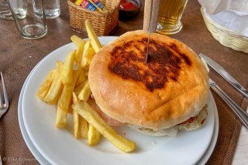 Abendessen gibt es dann wieder in der Hostería — für mich das Menü und für Andreas einen Burger — und damit ist schon wieder ein Urlaubstag vorbei.
