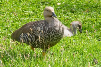 Zum Glück haben wir es aber nicht eilig, da der erste Katamaran über den Lago Pehoé eh erst um 9:00 Uhr abfährt. Also lassen wir uns auch beim Frühstück viel Zeit und schauen vor der Abfahrt noch einmal kurz bei den Magellan-Gänsen auf der Insel vorbei, die gerade Junge haben.