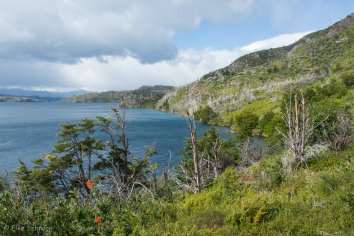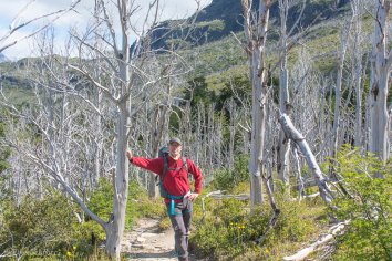 Wir machen uns direkt auf den Weg, um etwas dem großen Pulk zu entgehen. Aber dieser löst sich eh ziemlich schnell auf, da ein recht großer Teil der Passagiere entweder erstmal in der Paine Grande Lodge eincheckt um das Gepäck zu deponieren oder aber die Wanderung zum Grey Gletscher auf dem Schirm hat. Wir dagegen starten heute in die andere Richtung: zum Valle Francés.