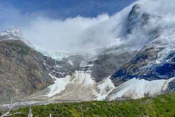 Es wird jetzt deutlich steiler und geht immer höher und tiefer in das Tal hinein. Der Untergrund wird schwieriger, aber die Ausblicke dafür mit jedem Schritt spektakulärer und immer wieder verkündet ein lautes Donnern unterwegs, dass der Gletscher „lebt“.