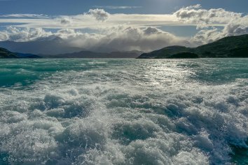 Gegen 8:00 Uhr brechen wir auf zur Anlegestelle in Pudeto, wo der Katamaran startet. Die Strecke über den Lago Pehoé wird von Hielos Patagonicos dreimal am Tag befahren und man kann nicht vorbuchen, sondern muss einfach rechtzeitig da sein.