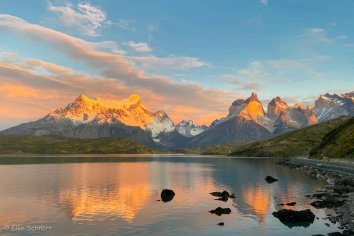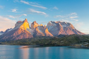 Mit letzten fantastischen Ausblicken über den See und auf die Bergkette der Torres verlassen wir den Nationalpark und fahren unseren letzten drei Urlaubstagen entgegen.