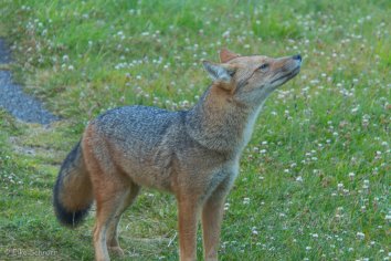 Hoffentlich hat er keinen Appetit auf die Magellan Gänse mit ihren Jungen, die hier auf der Insel wohnen…