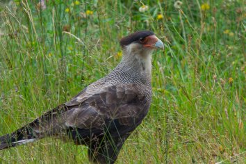 Wir entdecken einen hübschen Schopfkarakara am Straßenrand und ein paar Weißhalsibisse: