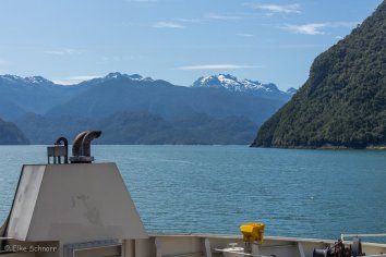 Leider merken wir irgendwann, dass die Fähre aus für uns unerfindlichen Gründen nicht durch die Fjorde fährt, sondern außen herum direkt nach Caleta Gonzalo.