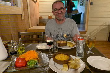 Inzwischen hat die Sonne den Kampf gegen die Wolken komplett verloren und es hat richtig heftig angefangen zu regnen. Andreas will trotzdem noch ein Stück spazieren gehen, da ihm die Zeit bis zum Dinner zu lang ist. Ich habe dazu bei dem Regen aber überhaupt keine Lust, zumal ich gerade erst geduscht habe und so gehen wir für die nächste Stunde getrennte Wege