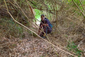 Aber irgendwann müssen wir einsehen, dass die beiden recht hatten. Bald können wir uns quasi nur noch kriechend fortbewegen und die spitzen Bambusstäbe pieksen uns permanent in die Seiten.