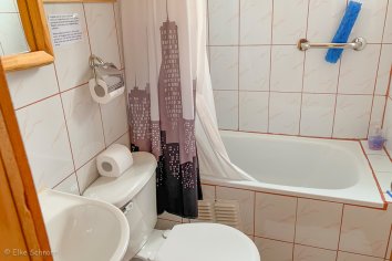 Die Hausherrin möchte dann den Zimmerpreis in Cash haben, um uns die IVA zu erlassen. Das reißt zwar ein größeres Loch in unsere Bargeldkasse, aber die 19 Prozent wollen wir natürlich nicht verschenken. Mal schauen, wann wir wieder an einen Geldautomaten kommen — in Puyuhuapi gibt es schon mal keinen.