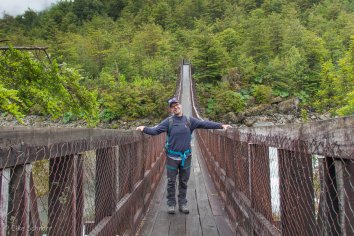 Zunächst überqueren wir mit Hilfe einer Hängebrücke den Fluss, der aus der Laguna Tempanos entspringt.