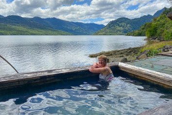 Auf der Rückfahrt stoppen wir bei den Termas del Ventisquero, wo man in den heißen Quellen baden und dabei den tollen Blick über den Fjord Queulat genießen kann.