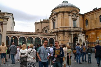 Zum Abschluss unserer Tour schauen wir noch den Petersdom an. Auch hier wartet eine riesige Menschenschlange, was uns aber im Rahmen der Führung glücklicherweise nicht betrifft.
