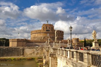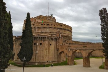 Wir laufen am Tiber wieder zurück in Richtung Hotel und schauen noch bei der Engelsburg vorbei. Ursprünglich ein Grabbau für Kaiser Hadrian wurde sie später zur stärksten Festung der Stadt ausgebaut und erhielt ihren Namen, als Papst Gregor in einer Vision von einem Engel das Ende der Pest angekündigt wurde.