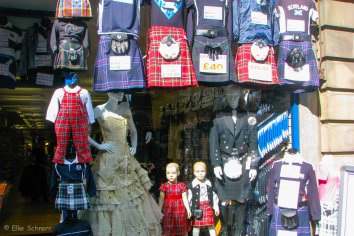 Dort bummeln wir zunächst eine Weile durch die Straßen und probieren die typischen Kilts und Trachten. Gekauft wird allerdings nix