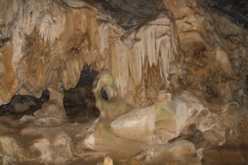 Alle Kammern und Tropfsteinformationen der Höhle haben auch individuelle Namen. Unser Guide erklärt uns einige davon: der engste Durchgang auf der Adventure Tour heißt z.B. „Briefkasten“, weil er so eng ist, dass eigentlich nur Briefe hindurch passen. Der längste Tunnel heißt dagegen „Hexenschuss“, weil man dabei etwa 30 Meter stark gebückt hindurch laufen muss und danach sicher einen Hexenschuss bekommt