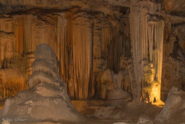 Die ältesten Gebilde hier sind über 1.5 Millionen Jahre alt, aber wir sehen auch „Stalaktiten-Babies“ mit einem zarten Alter von nur etwa 300 Jahren. Stalaktiten wachsen etwa 8-10 Millimeter in 100 Jahren, bei Stalagmiten geht es durch die Schwerkraft fast doppelt so schnell.