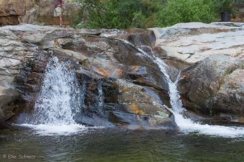 Das kleine Flüsschen Skelm ergießt sich hier in einen kristallklaren Felspool. Ein wunderbarer Platz um zu relaxen und die Füße ins eiskalte Bergwasser zu halten.