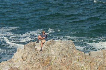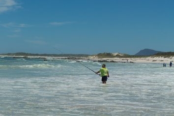 Hier am Strand gibt es überhaupt keine Quallen oder Schnecken, dafür aber Unmengen von angespülten Algen. Leider ist aber das Meer zu aufgewühlt, um irgendwelche Wale entdecken zu können.