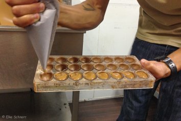 Ein Angestellter erklärt uns hier bei einer Privatführung viel Interessantes rund um die Schokoladen- und Pralinenherstellung und wir dürfen natürlich alles probieren