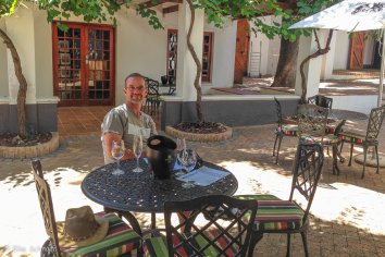 Ein paar Weingüter weiter machen wir den nächsten Halt in Simonsig. Auch dieses gefällt uns sehr gut und hier lassen wir uns auf der schattigen Terrasse zu einem Tasting nieder.