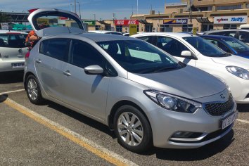Wir bekommen einen kleinen Kia, der zwar wahrscheinlich völlig ausreichend ist, nur leider bekommen wir nicht beide Taschen in den Kofferraum ohne die Abdeckung wegzunehmen.