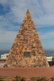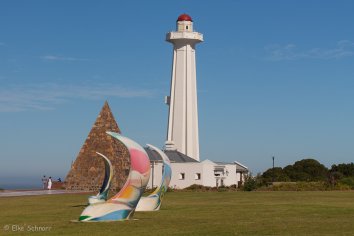 In Port Elizabeth machen wir dann zunächst einen kleinen Stadtrundgang und kommen am Donkin Memorial vorbei. Die Pyramide lies Gouverneur Sir Rufane Donkin Anfang des 19. Jahrhunderts in Erinnerung an seine verstorbene Frau Elizabeth errichten, nach der übrigens auch die Stadt ihren Namen hat. Der Leuchtturm daneben beherbergt die Touristeninformation.
