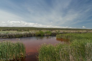 Nach zwei Stunden sind wir wieder am Ausgangspunkt zurück und fahren nun noch die Scenic Road im Park ab. Wir halten an vielen View Points und genießen die schönen Aussichten. Am Abrahamskraal Wasserloch befindet sich auch ein toller Bird Hide, wo wir eine ganze Weile die Vögel an ihren Nist- und Brutplätzen beobachten können.