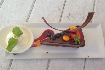 Unser Lunch fällt aufgrund eines sehr mächtigen Nachtisches dann doch recht üppig aus — wir können leider mal wieder nicht widerstehen — so dass wir das Dinner für heute Abend schon mal streichen.
