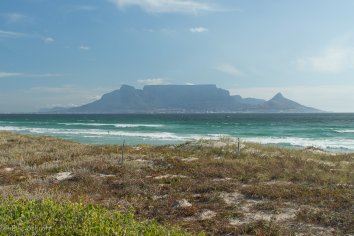 In Bloubergstrand halten wir dann noch mehrere Male an, weil sich uns so ein toller Blick auf Kapstadt und den Tafelberg bietet, der heute sein Tischtuch völlig abgelegt hat. Hoffen wir mal, dass wir das während unserer nächsten vier Tage noch öfters erleben.