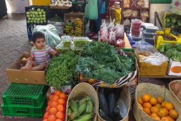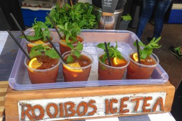 Leckere Düfte aus aller Herren Länder vermischen sich — nur sind wir leider unmittelbar nach dem Frühstück gekommen und deshalb (eigentlich) pappsatt. Trotzdem bekommen wir natürlich Appetit und probieren das ein oder andere Häppchen, während wir uns in einer Menschenmasse einmal quer hindurch schlängeln. Es gibt hier einfach alles, was das Herz begehrt: frisches Gemüse, Käse, Brot, Kaffeespezialitäten, Fisch und viele asiatische und internationale Gerichte.