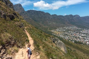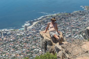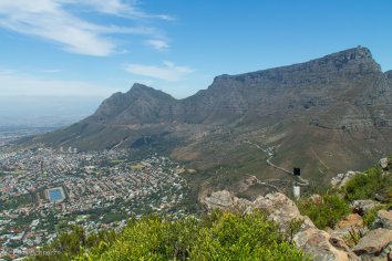 Aber oben angekommen erwartet uns ein großes Plateau mit einer grandiosen Aussicht: einen 360 Grad-Rundumblick auf Camps Bay, Sea Point, Green Point, die Waterfront, den Tafelberg und die zwölf Apostel. Einfach genial!