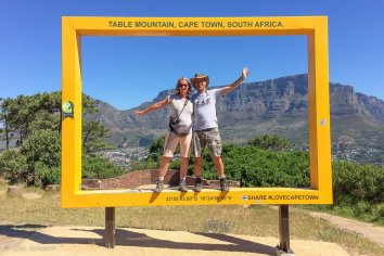 Und wo wir einmal hier sind, fahren wir auch gleich noch das kurze Stück bis zum Viewpoint am Signal Hill. Auch von hier hat man nochmal tolle Aussichten — auf Bo Kaap und das WM Stadion, auf den Lions Head, den wir gerade erklommen haben und und sogar eine gerahmte Sicht auf den Tafelberg