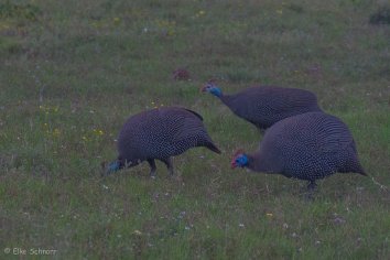 Es ist schon dämmrig und zum Fotografieren nicht mehr so dolle, aber unsere „Ausbeute“ ist auch im eigenen Auto und ohne Guide gar nicht mal so schlecht: In den 90 Minuten, die wir noch unterwegs sind, sehen wir Elefanten, Warzenschweine, Zebras, Kudus und ein paar Perlhühner.