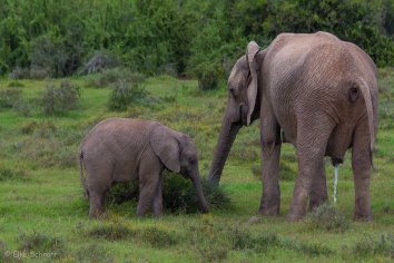 Zuerst sehen wir eine Elefantenkuh mit ihrem Nachwuchs….