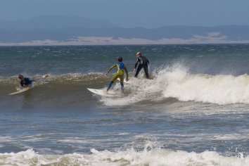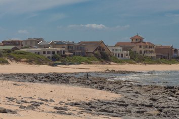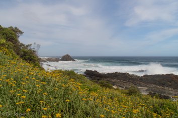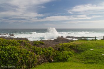 Gegen Mittag fahren wir dann weiter in Richtung Tsitsikamma. Am Beach von Jeffrey’s Bay legen wir eine kurze Picknickpause ein. Wir unterhalten uns ganz nett mit einem Einheimischen und beobachten die Surfer, die auf den Wellen entlang tanzen — die Bucht ist offenbar eine beliebte Spielwiese für diese Sportler.