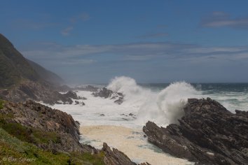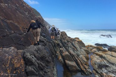 Die Wanderung beginnt direkt mit dem Abstieg zu den Rock Pools und wir sehen gleich am Anfang einen Knysna-Turako.