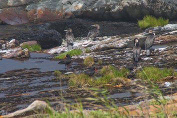 Auch das Meer ist heute durch den starken Wind leider so aufgewühlt, dass wir keine Chance haben, Wale oder Delphine zu sehen. Dafür entdecken wir aber ein paar Kormorane und Austernfischer.