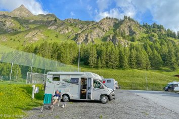 Wir tanken zollfrei den Camper noch einmal voll und fahren gegen 8:20 Uhr in Samnaun los in Richtung Südtirol. Das Zollhäuschen ist um diese Uhrzeit noch nicht besetzt und so müssen wir nicht um unsere leicht über dem Limit liegenden Sundowner bangen