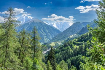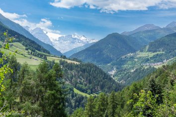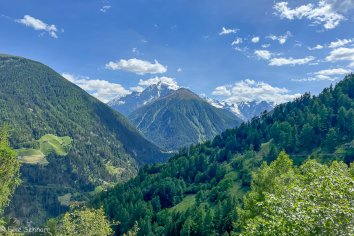 Eine Stunde später laufen wir über den Archaikweg langsam wieder zurück. Unterwegs gibt es immer wieder tolle Ausblicke auf die Ortlergruppe.