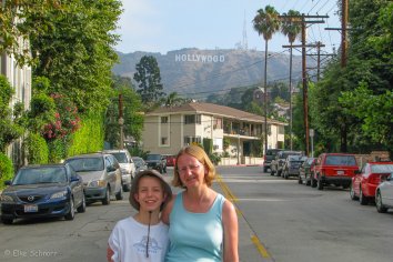Da wir früh dran sind und bis zur Öffnung noch genügend Zeit haben, machen wir noch einen kleinen Umweg, um uns den Hollywood-Schriftzug anzuschauen. Leider kommen wir nicht sehr nahe an ihn heran und Hochwandern ist nicht erlaubt. So können wir seine Größe — jeder Buchstabe ist immerhin 15 Meter hoch — nur aus der Ferne erahnen.