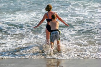 Zurück in Santa Monica gehen wir noch für eine Stunde an den Strand und kämpfen mit den Wellen, die heute noch gewaltiger erscheinen als gestern.