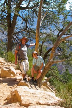 Wir kommen natürlich nicht bis ganz nach unten — das wäre zu weit und an einem Tag mit Wiederaufstieg — zumindest für uns — nicht zu schaffen. Aber etwa 1,5 Meilen klettern wir in den Canyon hinunter und können dabei grandiose Ausblicke auf die berühmteste Schlucht der Erde genießen.