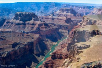 Einen nochmals ganz anderen Blickwinkel verspricht der Nachmittag. Wir fahren zum Grand Canyon Airport, wo wir mein Geburtstagsgeschenk einlösen: einen Gutschein über einen Helicopter-Flug mit Maverick über den Canyon. 50 Minuten lang genießen wir die Farbenvielfalt und Ausmaße dieses spektakulären Naturwunders aus der Vogelperspektive. Ein unvergessliches Erlebnis!