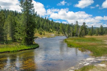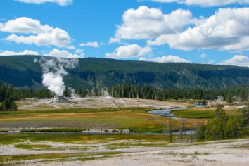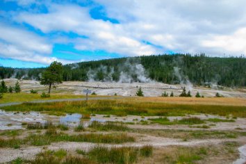 Nach dem Frühstück fahren wir heute in Richtung Westen, um die Geysire des Upper Geyser Basin anzuschauen.