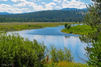 An unserem zweiten Tag im Grand Teton Park haben wir den Taggart Lake auf dem Programm. Zunächst fahren wir aber noch auf dem Scenic Drive entlang des Snake Rivers und genießen die tollen Aussichten auf das Bilderbuchpanorama der Tetons.