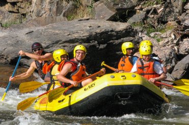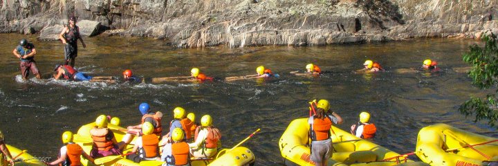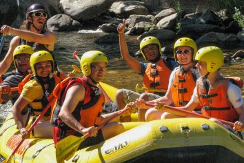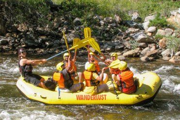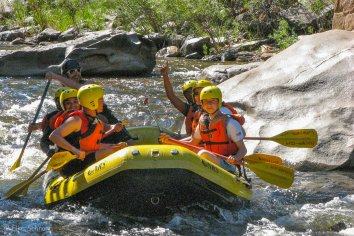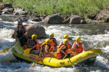 Für den Nachmittag war Rafting angesagt. Wir fuhren nach Fort Collins, wo wir bei Wanderlust — einem recht deutsch anmutendem Namen — eine Halbtages-Tour auf dem Poudre River gebucht hatten. Wegen dem um diese Jahreszeit relativ niedrigen Wasserstand wird zwar leider nur noch die Beginner-Tour angeboten — aber wir haben trotzdem jede Menge Spaß